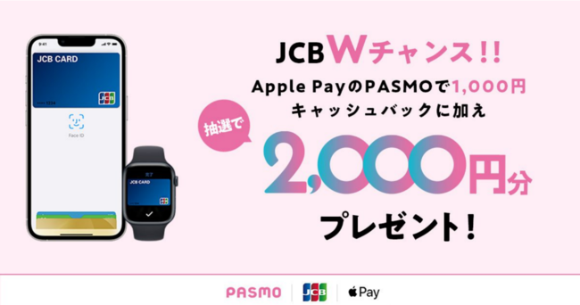 JCB、PASMOチャージ2,000円分が1,000名様に当たる「Apple PayのPASMO×JCB限定!Wチャンスキャンペーン」を実施