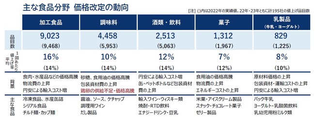 帝国データバンクは、食品メーカー主要195社における価格改定動向について調査を行った。