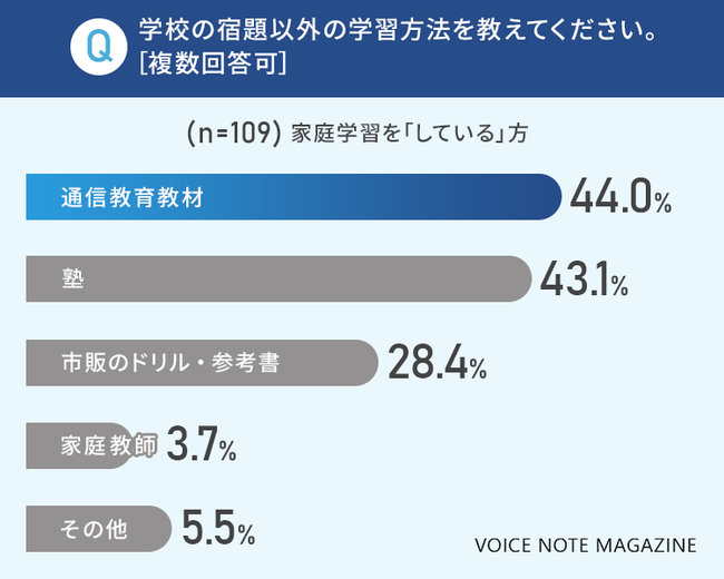 多くの方が学校の宿題以外に家庭学習をしているようです。