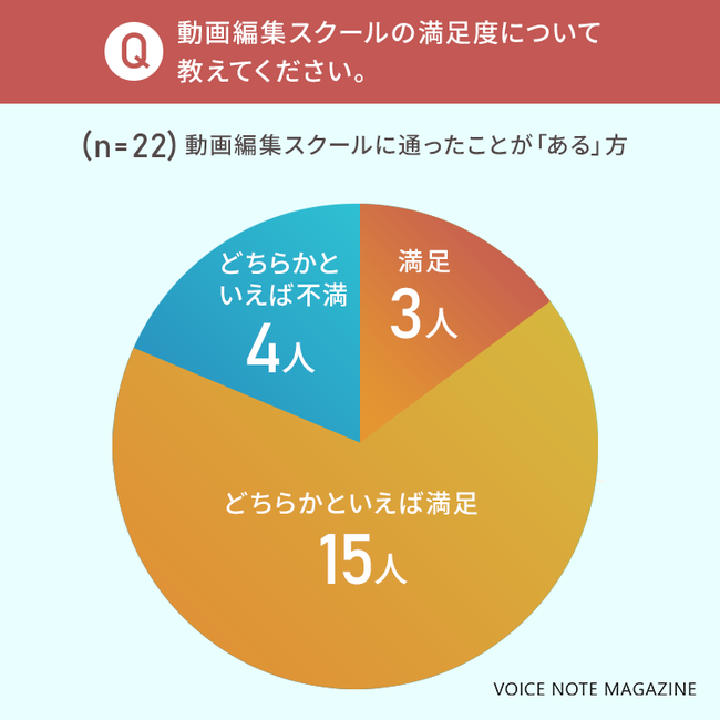 動画編集スクールに通ったことが「ある」1.4%(22名)に、満足度についても聞きました。