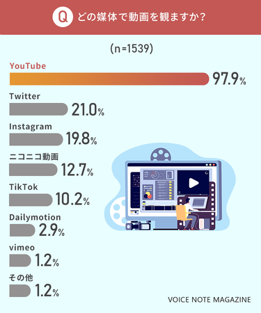 97.9%とほとんどの方が「YouTube」で動画を観ているようです。