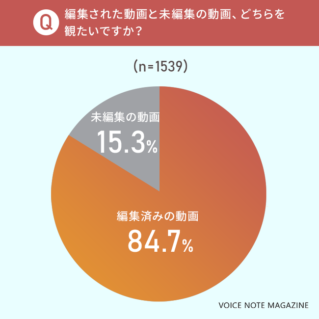 【誰でも動画をアップできる時代ですが…】84.7%が「未編集の動画」よりも「編集済みの動画」を観たい