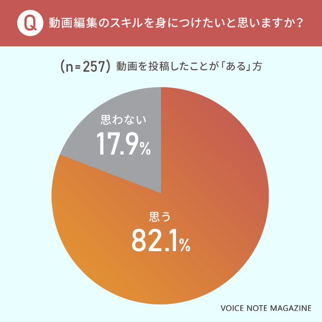 8割以上の方が動画編集のスキルを身に着けたいと思っているようです。
