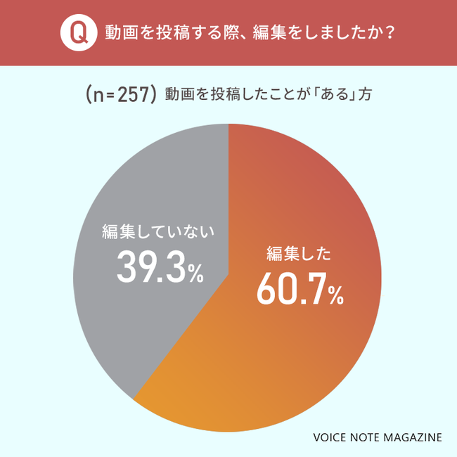 60.7%が「編集した」動画を投稿したことがあるようです。