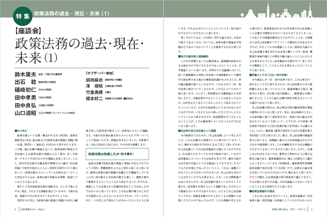 本特集では、政策法務の発展のためには何が必要で、そのための理念・方法は何なのか、政策法務の第一人者たちに語っていただきます。
