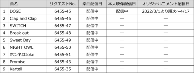 配信予定が変更になる場合があります。楽曲によって配信機種は異なります。なお、本人映像およびオリジナル