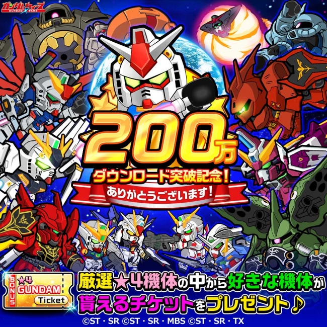 ■ 【200万DL突破記念 その1】☆4ガンダムタイプを選べるチケットプレゼント