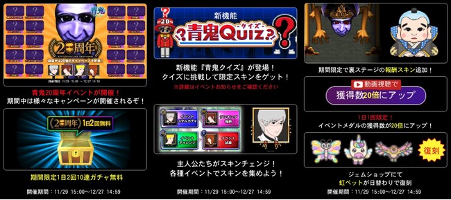 20.青鬼20周年を記念した「20周年特別ログボ」が登場予定