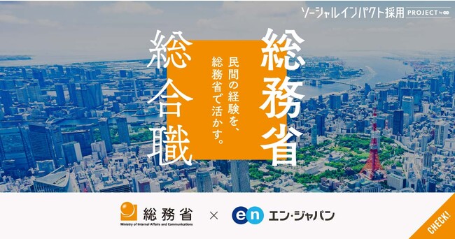 エン・ジャパン株式会社(本社:東京都新宿区、代表取締役社長:鈴木孝二)は、2023年5月25日(木)から、総務省の『ソーシャルインパクト採用プロジェクト』を開始します。当社が運営する採用支援サービスを通じ、「総合職(課長補佐級・係長級)」の公募を実施。下記、本プロジェクト概要と、総務省のコメントを紹介します。