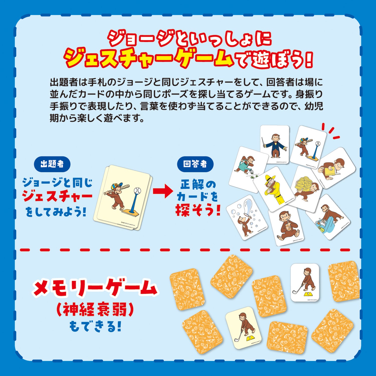 カードに描かれたジョージと同じポーズをからだで表現して遊ぶジェスチャーゲームが遊べます。
