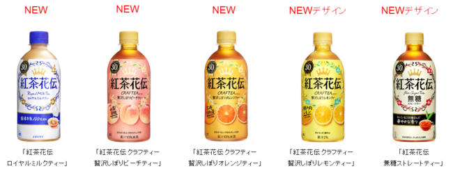※1 「紅茶花伝 無糖ストレートティー」、「紅茶花伝 クラフティー 贅沢しぼりレモンティー」はパッケージデザインのみリニューアル