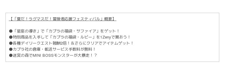 デイリークエスト報酬などが2倍になる期間限定イベント「夏だ!ラグマスだ!冒険者応援フェスティバル」開催!