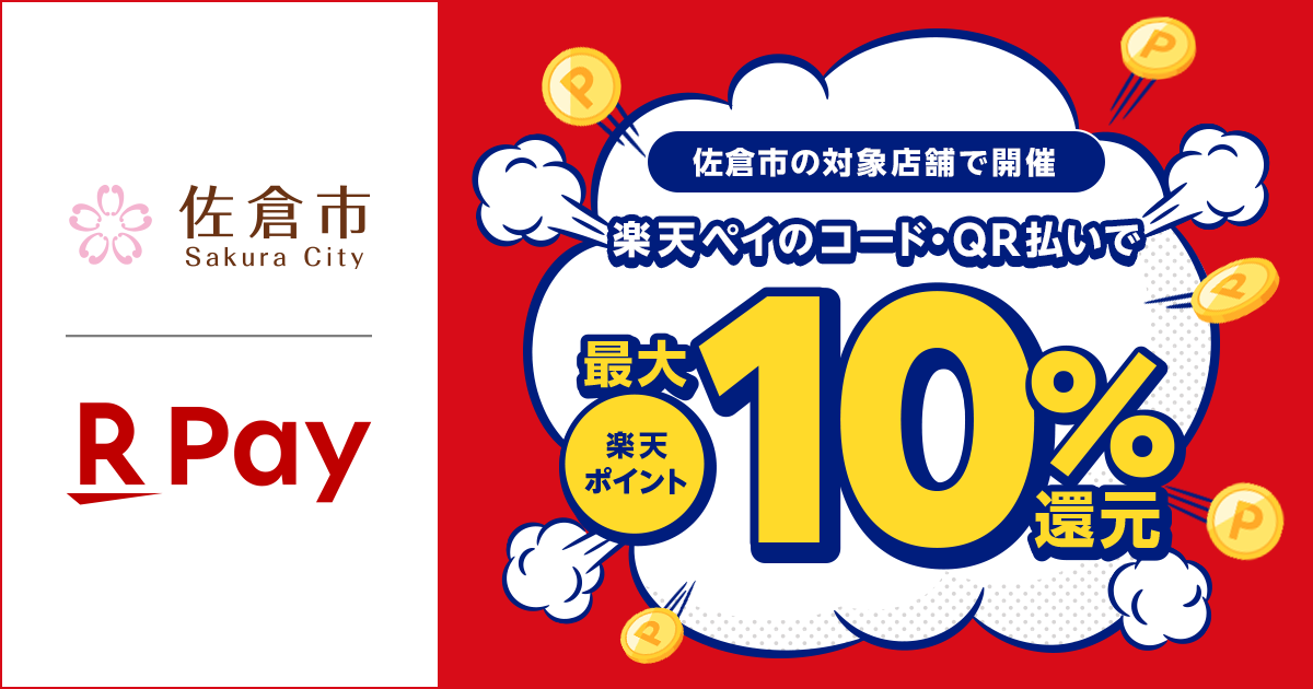 「楽天ペイ」、千葉県佐倉市が実施する「家計を応援!佐倉市キャッシュレスで最大10%戻ってくるキャンペーン!」に参加