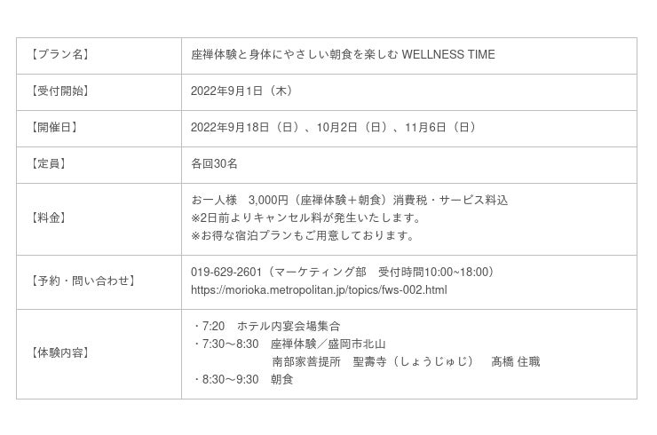 施策2. 寺院と提携した「座禅&身体にやさしい朝食」プラン 〜おいしく、たのしく、カラダとココロを整える〜