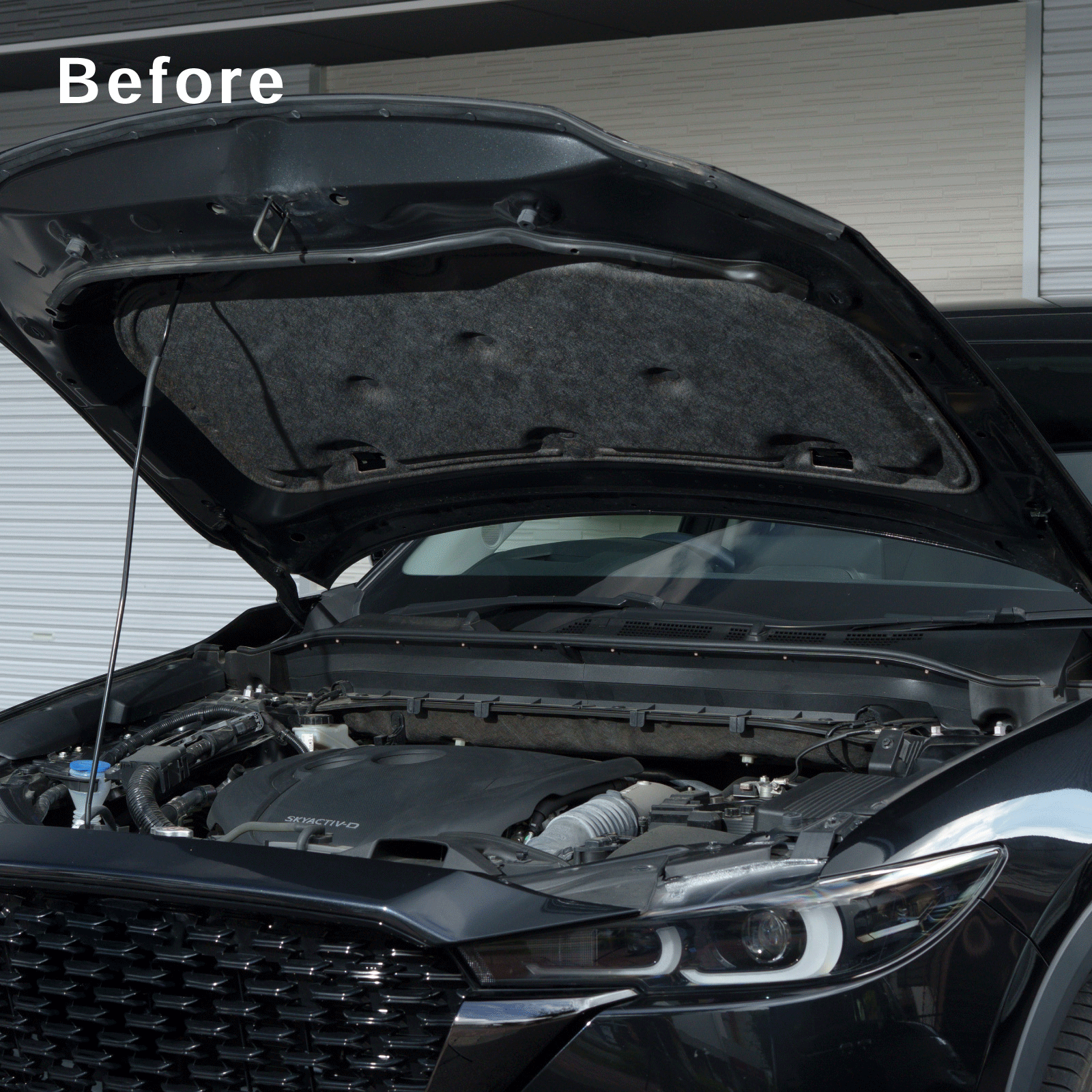 しっかりと支える機能性を持ちながら、デザインにもこだわり、CX-5/CX-8のエンジンルームに美しく調和します。日常的に見えない部分だからこそ、スタイリッシュな外観を追求した設計です。