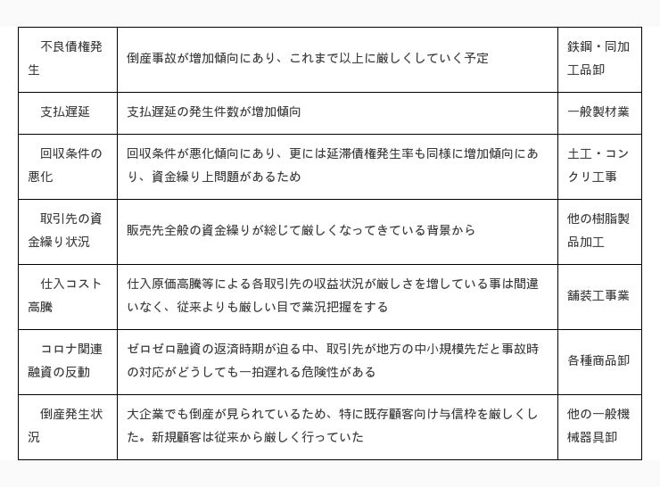 取引先に対する与信管理方針や運用を厳しくする理由(自由回答・抜粋)