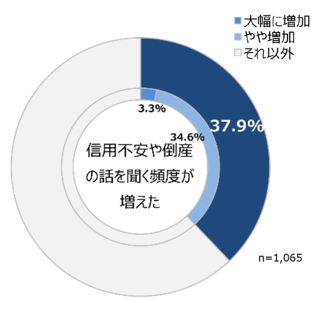 4割の企業で、自社業界における信用不安や倒産の話を聞く頻度が増えた