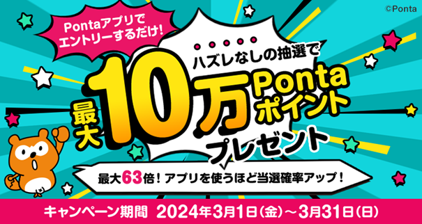 Pontaアプリでエントリーするだけ!もれなくもらえる抽選最大10万Pontaポイントキャンペーン 概要