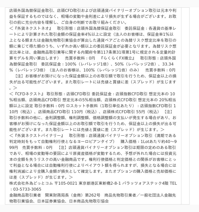 今後も外為どっとコムでは、外国為替を中心に、投資家の皆様のご期待に応えるべく、サービスやお取引環境のさらなる向上を図ってまいります。