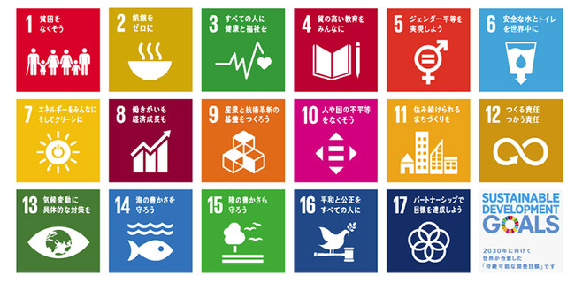 SDGsとは「持続可能な開発目標(Sustainable Development Goals)」のことです。社会が抱える問題を解決し、世界全体で2030年をめざして明るい未来を作るための17のゴールと169のターゲットで構成されています。2015年9月、ニューヨーク国連本部において193の加盟国の全会一致で採択された国際目標です。