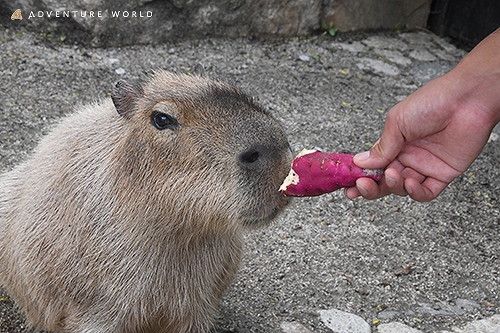オニ(鬼)テンジクネズミという別名を持つカピバラへ、特製恵方巻をプレゼントします。