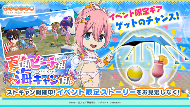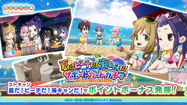 株式会社enish(本社:東京都港区、代表取締役社長:安徳 孝平、以下enish)は、2023年7月1日(土)より、TVアニメ『ゆるキャン△』初となるオンラインゲーム「ゆるキャン△ つなげるみんなのオールインワン!!」にて、水着イベント「夏だ!ビーチだ!海キャンだ!」を開催いたします。