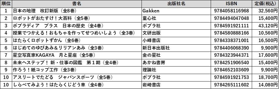 日本出版販売株式会社(代表取締役社長:富樫 建、略称:日販)が運営する日販図書館選書センターは、来場した学校図書館関係者によって選書された図書を、【セット部門】【単品部門(小学校)】【単品部門(中学校)】の3ジャンルで選書冊数順にランキング化し、毎年発表しています。