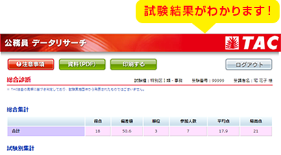 無料Web採点サービス「本試験データリサーチ」は、Web上でご自身の解答を入力(選択)いただくと、全国の受験者からのデータ集計・分析した試験別の平均点・順位、問題別の正解率等が確認できるTAC独自のシステムです。