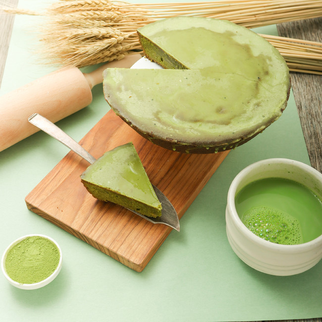 宇治抹茶のガトー・ナンテに、抹茶チョコと栗の甘露煮を混ぜ込み、ラムの香る宇治抹茶のアイシングで仕上げました。