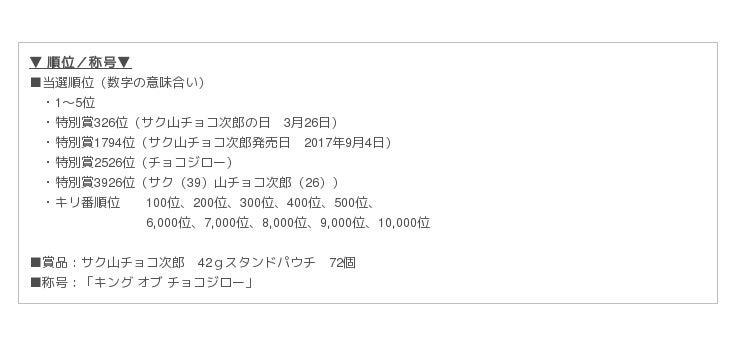 「サク山チョコ次郎」杯では、食いしん坊な"珍獣" チョコジローが可愛い「サク山チョコ次郎」を入賞賞品として手に入れることができます。