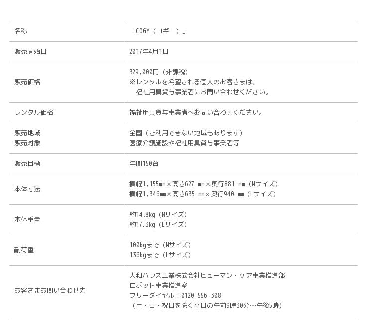 また、当社は2017年4月1日より、TESSが開発・製造する足こぎ車いす「COGY(コギ―)」を、医療介護施設や福祉用具貸与事業者等に向け販売を開始します。