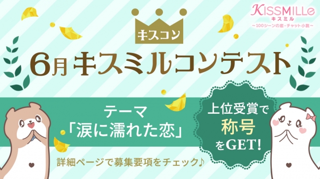 定期チャット小説作品コンテスト「キスミルコンテスト2020年6月」が開催決定! テーマは「涙に濡れた恋」6月1日(月)より応募受付開始!