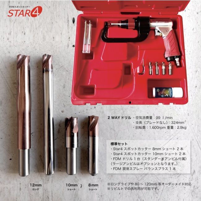 【数量限定】エフディエム スポットカッター Star4 ドリルセット 展示品特価キャンペーンを開催! 1,500MPa級の超高張力鋼板でこれまでのスポットカッターとの違いをお試しください。