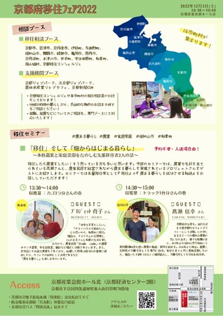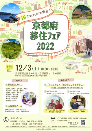 ■京都府は、都市部から府内市町村への移住を促進するため、12月3日(土)に「京都府移住フェア2022」を京都経済センターにて開催いたします。