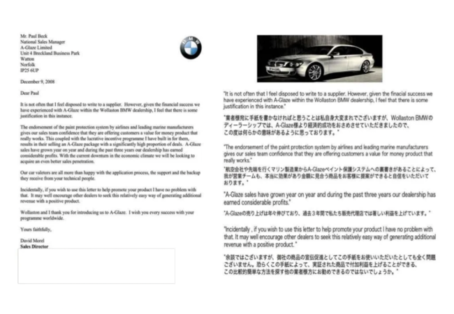 カーディテイリングニュースに掲載:鉄道・航空機にも採用。英国ポリマー、国内販売会社が変更。A GLAZE/ファインピース