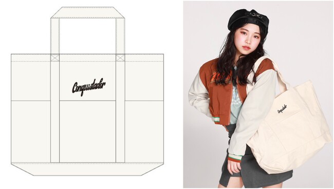 コラボレーションアイテムのメインは「ロングTシャツ」。「CONQUISTADOR」を虹色にみえるような箔プリントで表現し、インパクトこそあるが、控えめなデザインで、普段使いしやすくなっている。ロングTシャツの他にもトレンドのスマホショルダーストラップセットや、ビッグトートバッグ、撮りおろしのアクリルスタンドキーホルダーの計4種の展開だ。