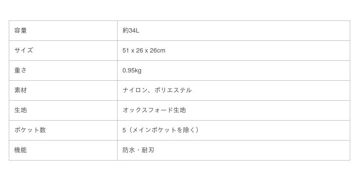34Lの大容量かつ持ち運びにちょうど良いつくりとサイズ