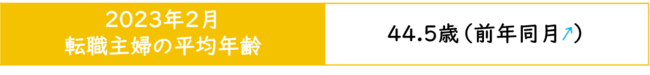 【転職主婦の平均年齢調査 2023年2月】44.5歳(前年同月比+1.3歳)