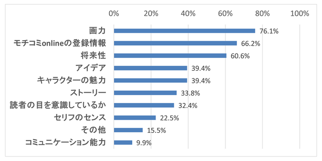- 商業目線を持てるかどうか。「自分が描きたいもの」ではなく、「読んだ人が面白いと思うかどうか」を考えられる人。