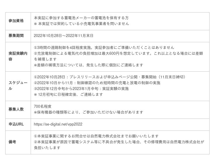 また、本日より、本実証にご参加いただく蓄電池保有者を募集します(表3参照)。