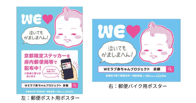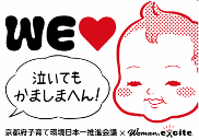 エキサイト株式会社(所在地:東京都港区、代表取締役社長:西條晋一、以下「エキサイト」)運営のママ向けウェブメディア「ウーマンエキサイト」が立ち上げた「WEラブ赤ちゃんプロジェクト」。これに賛同した「京都府子育て環境日本一推進会議」は京都府と地域活性化包括連携協定を締結した、日本郵便株式会社・イオンリテール株式会社・株式会社京都銀行と、京都版「泣いてもかましまへん!」ステッカーの配布やポスターの掲示等を実施中です。