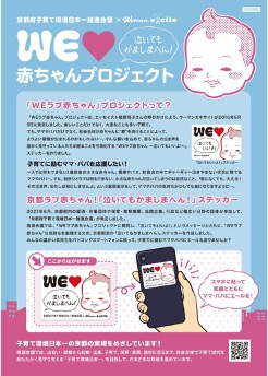 引き続き「京都府子育て環境日本一推進会議」とともに「WEラブ赤ちゃんプロジェクト」を拡大し、子育てに寛容な社会・風土づくりに力を入れていきます。