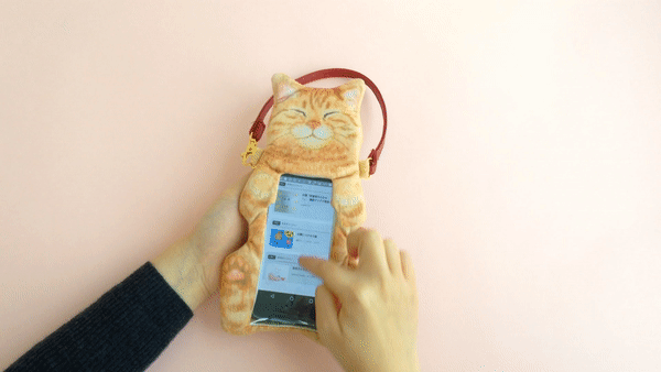 猫に怒らせずにおなかを思う存分ナデナデしたい……。そんな夢を叶えるスマートフォンポーチをめざしました。じっとこちらを見つめてくる愛くるしいまなざしや、気持ちよさそうな表情にこだわってデザインしています。まわりの人からも注目され、また和ませてしまう。そんなポーチが誕生しました。猫好きな方へのプレゼントにもおすすめです。