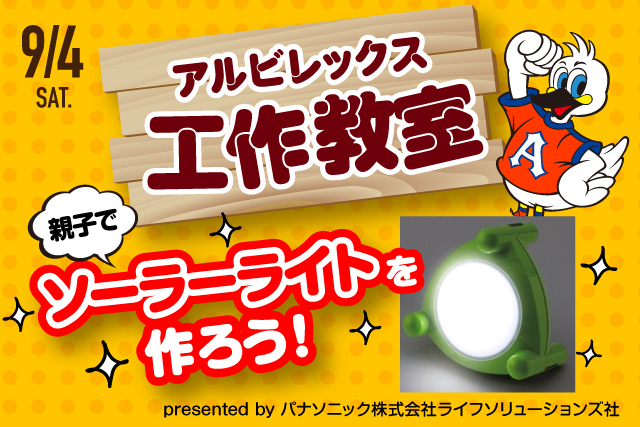 キャンプや夜の散歩でも大活躍のソーラーライトを親子で一緒に作りましょう。小学3年生以上は1人でも参加可能です。