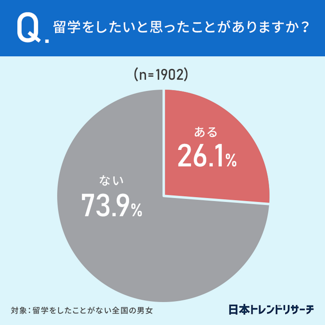 26.1%の方が、留学をしたいと思ったことが「ある」と答えました。