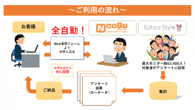「1000人アンケート」とは、ナビットが運営する「Sohos-Style」へ登録している全国約63,400人の調査モニターを対象に、性別、年齢、居住地、属性など実態の明らかなモニターを絞り込んでアンケートを実施出来るサービスです。