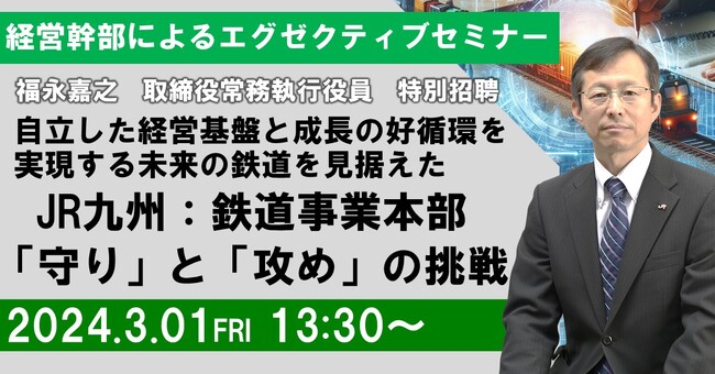 【JPIセミナー】JR九州「自立した経営基盤と成長の好循環を実現する未来の鉄道を見据えた鉄道事業本部 ”守り”と”攻め”の挑戦」3月1日(金)<東京開催>