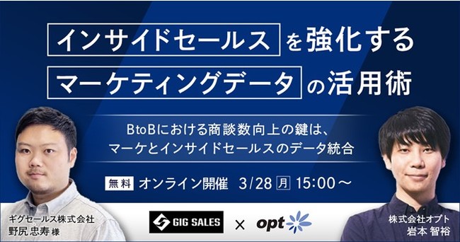 また、今回の協業にあたり、ギグセールス様と無料ウェビナーを本年3月28日(月)に共同開催いたします。インサイドセールスから見えた顧客の声をマーケティング施策に反映する方法や、顧客理解を深め、インサイドセールスの商談数・成約率を高める方法を具体的な事例とともにご紹介いたします。今後のマーケティング活動に向けた気づき・ヒントを提供できる時間となれば幸いです。皆様のご参加を心よりお待ちいたしております。