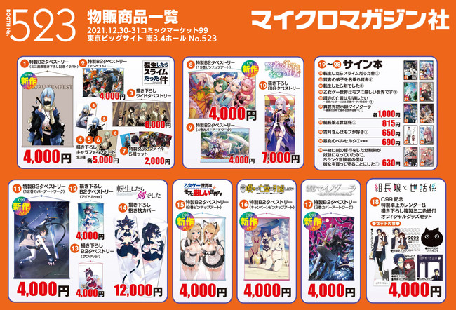 マイクロマガジン社(東京都中央区)は、2021年12月30日(木)〜31日(金)の2日間、東京ビッグサイトにて開催されるイベント「コミックマーケット99」企業ブースに出展いたします。