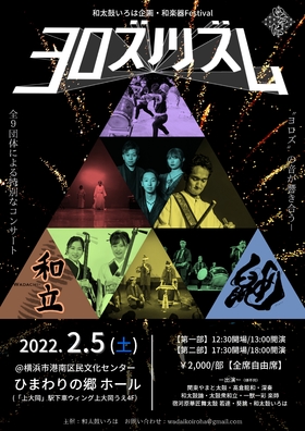 和太鼓いろは主催・和楽器FESTIVAL「ヨロズノリズム」が2022年2月5日(土) に横浜市港南区民文化センター ひまわりの郷・ホール(神奈川県横浜市)にて開催されます。チケットはカンフェティ(運営:ロングランプランニング株式会社、東京都新宿区、代表取締役:榑松 大剛)にて発売中です。